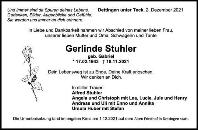 TodesanzeigeVon Benny Kuder30. November 2021Kommentar hinterlassen