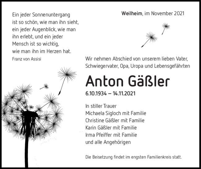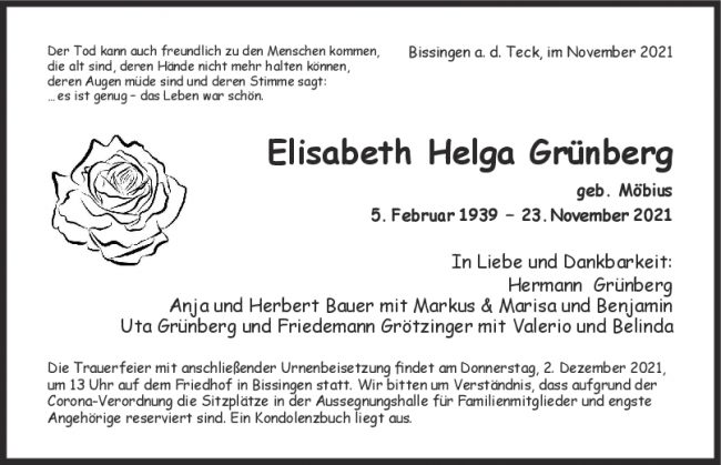 TodesanzeigeVon 27. November 2021Kommentar hinterlassen