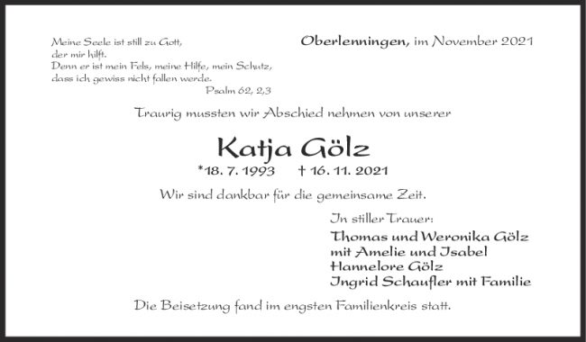 TodesanzeigeVon Benny Kuder27. November 2021Kommentar hinterlassen