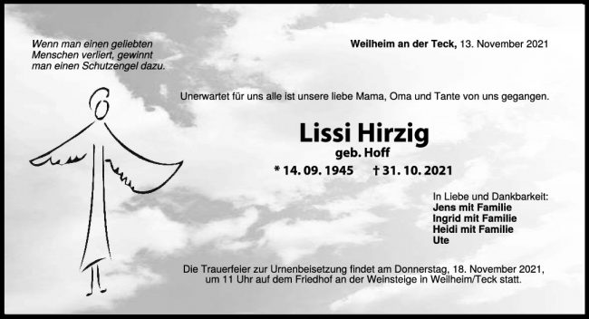 TodesanzeigeVon 18. November 2021Kommentar hinterlassen