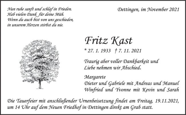 TodesanzeigeVon Benny Kuder11. November 2021Kommentar hinterlassen