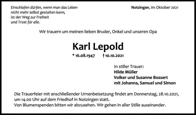 Trauer Karl Lepold