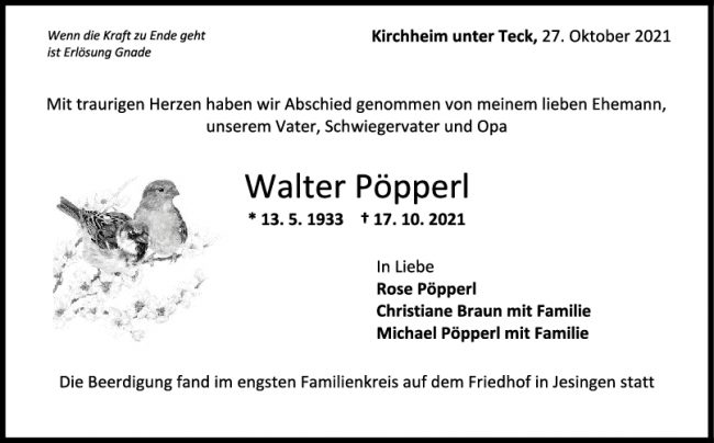 Trauer Walter Pöpperl