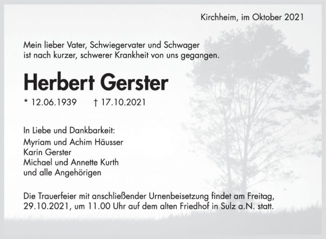 Trauer Herbert Gerster