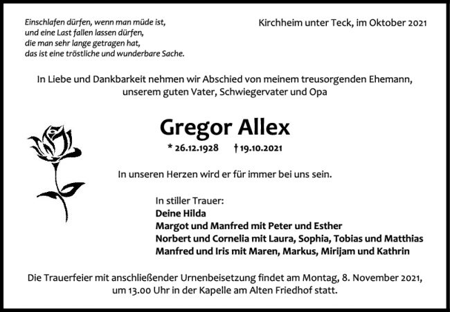 Trauer Gregor Allex