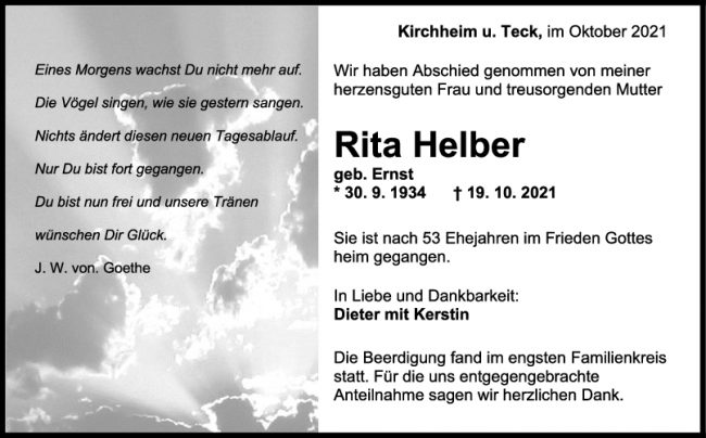 Trauer Rita Helber