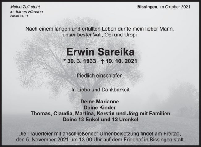Trauer Erwin Sareika