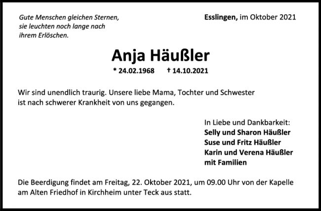 TodesanzeigeVon Benny Kuder17. Oktober 20212 Kommentare