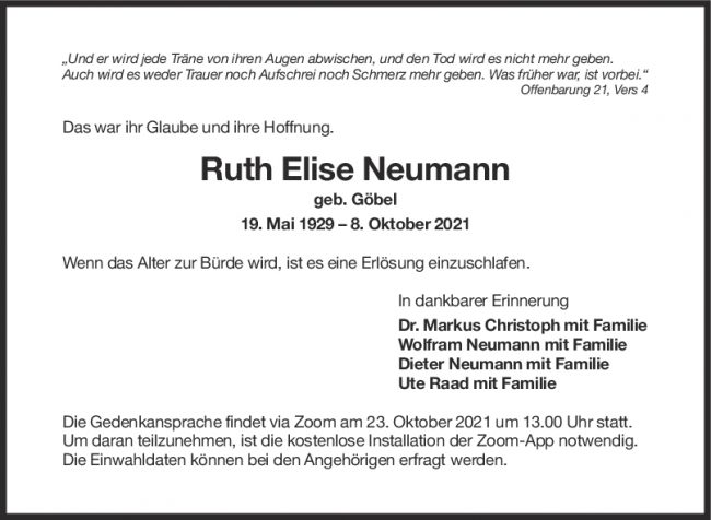 TodesanzeigeVon 14. Oktober 2021Kommentar hinterlassen