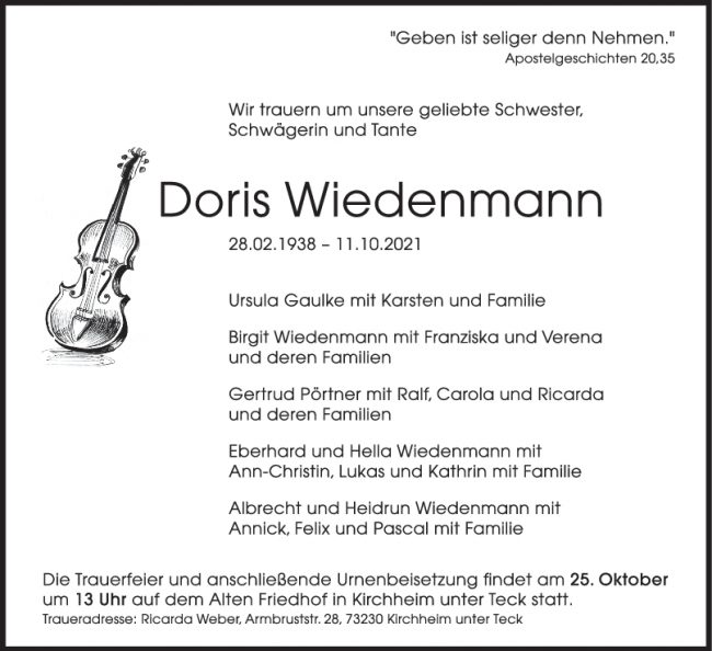 TodesanzeigeVon Benny Kuder11. Oktober 20213 Kommentare