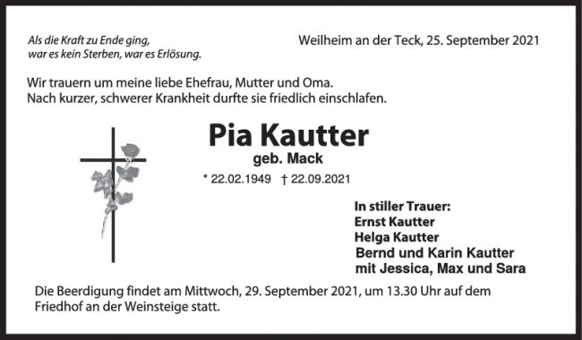 TodesanzeigeVon 27. September 2021Kommentar hinterlassen