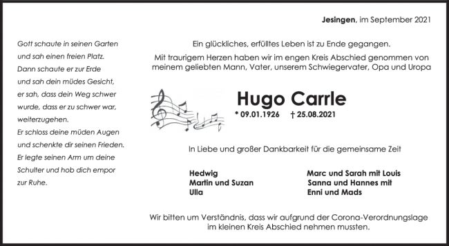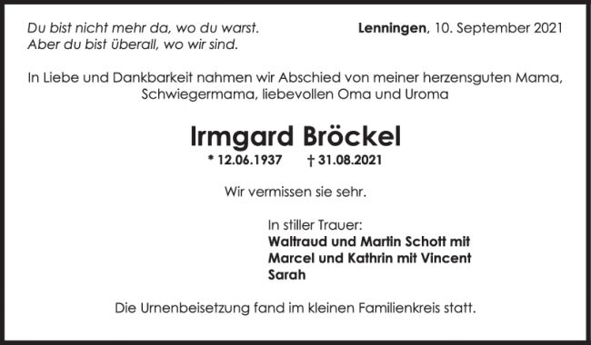 TodesanzeigeVon Benny Kuder9. September 2021Kommentar hinterlassen