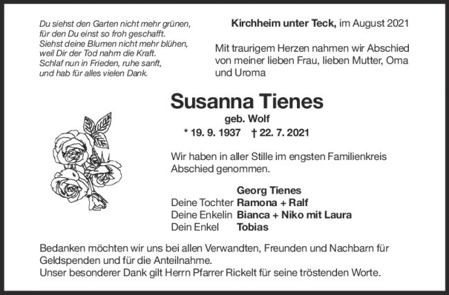 TodesanzeigeVon Benny Kuder15. August 2021Kommentar hinterlassen