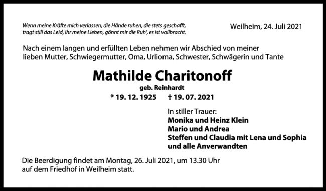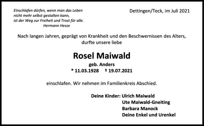 TodesanzeigeVon 26. Juli 20212 Kommentare
