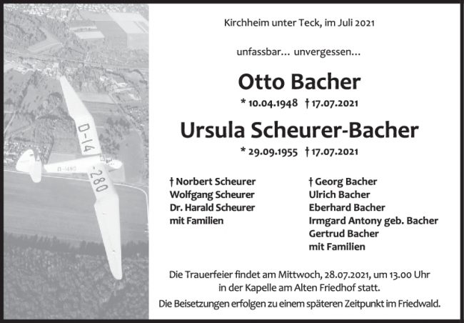 Trauer Otto Bacher & Ursula Scheurer-Bacher
