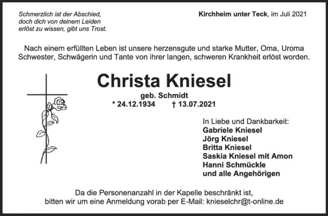 Trauer Christa Kniesel