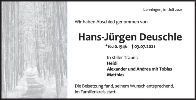 Trauer Hans-Jürgen Deuschle