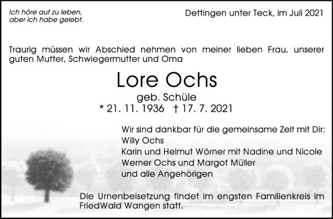 Trauer Lore Ochs