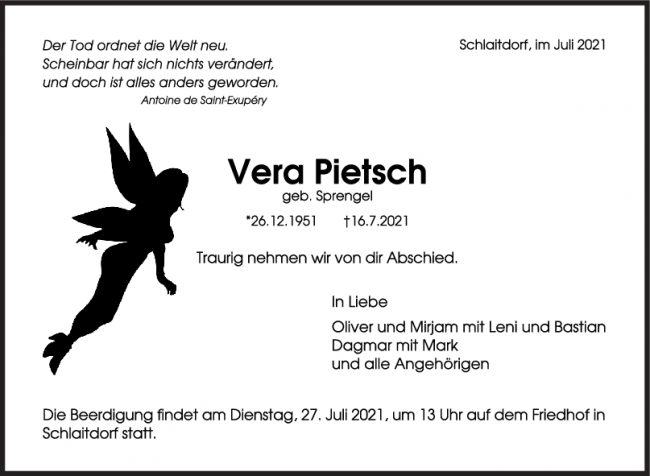 Trauer Vera Pietsch