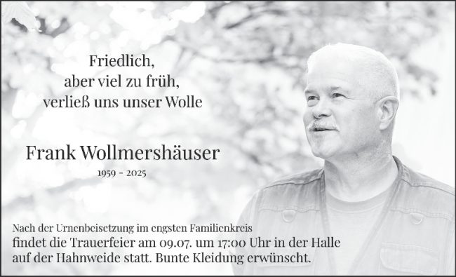 TodesanzeigeVon Benny Kuder21. Juni 2025Kommentar hinterlassen