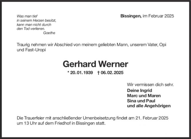 TodesanzeigeVon 15. Februar 20253 Kommentare