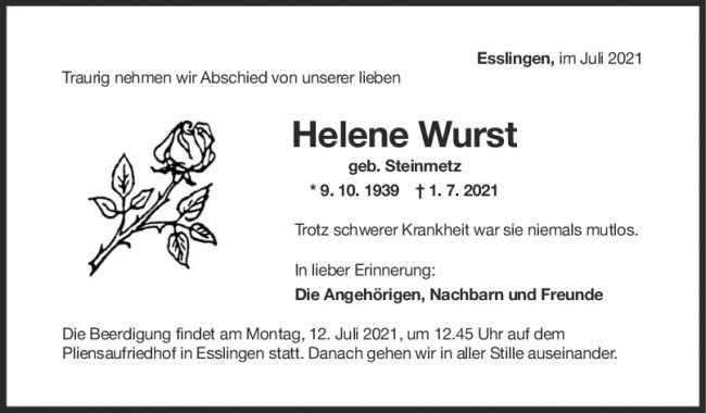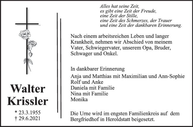 TodesanzeigeVon Benny Kuder7. Juli 2021Kommentar hinterlassen