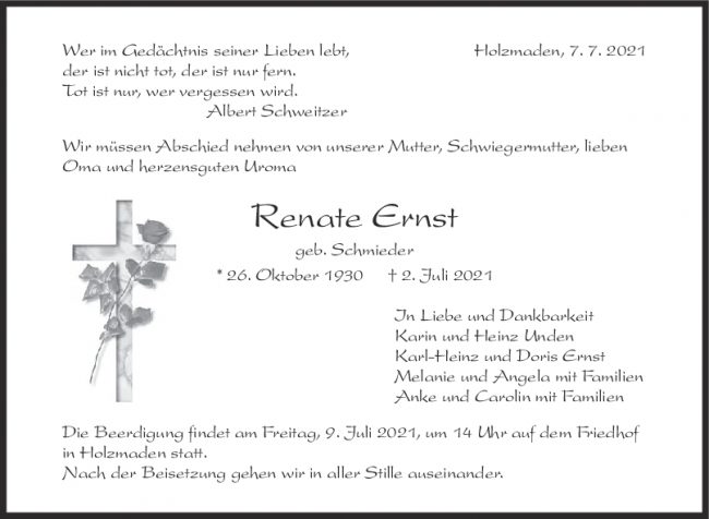 TodesanzeigeVon Benny Kuder13. Juli 2021Kommentar hinterlassen