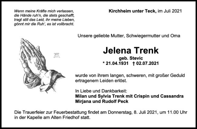 TodesanzeigeVon 13. Juli 2021Kommentar hinterlassen