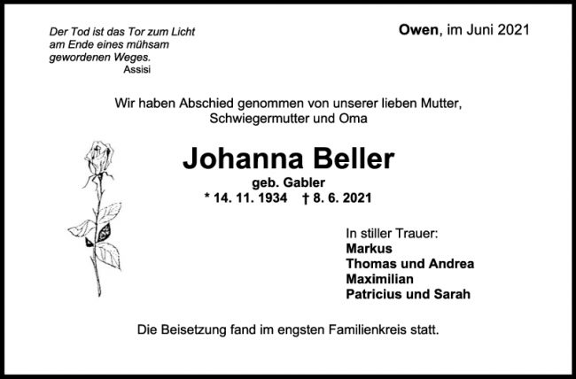 TodesanzeigeVon 21. Juni 2021Kommentar hinterlassen