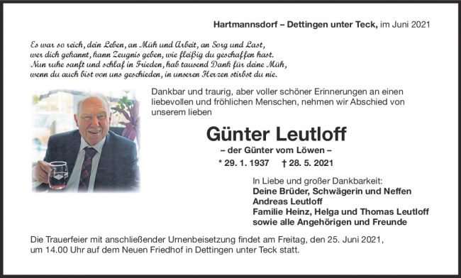 TodesanzeigeVon Benny Kuder19. Juni 20211 Kommentar