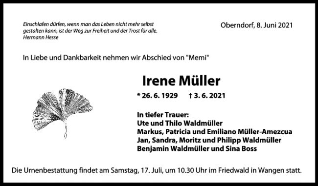 Trauer Irene Müller