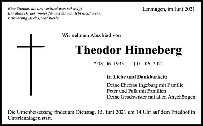 Trauer Theodor Hinneberg