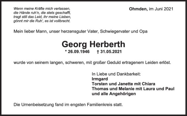 Trauer Georg Herberth