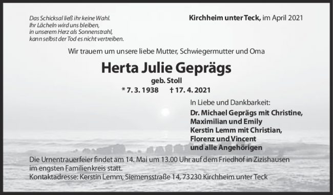 TodesanzeigeVon 6. Mai 2021Kommentar hinterlassen