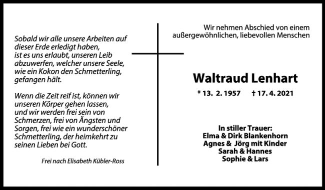 Trauer Waltraud Lenhart