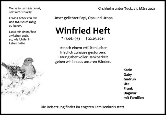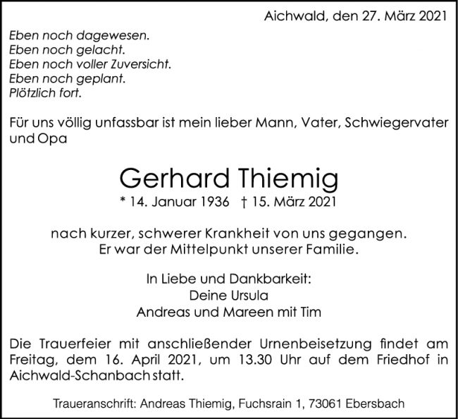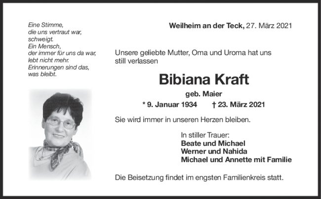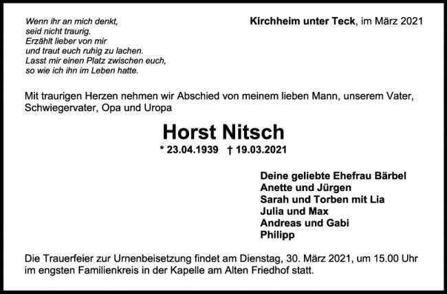 TodesanzeigeVon Benny Kuder28. März 2021Kommentar hinterlassen