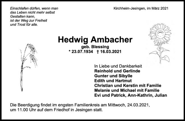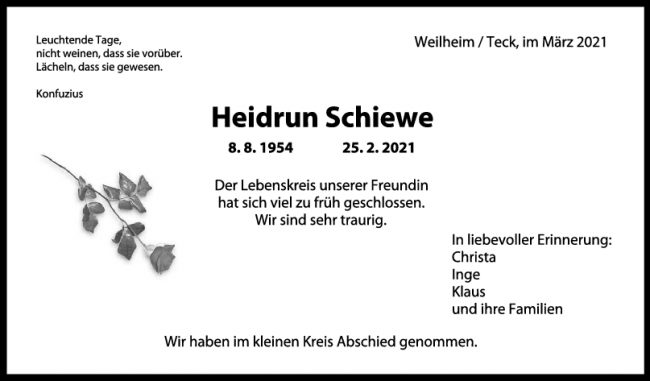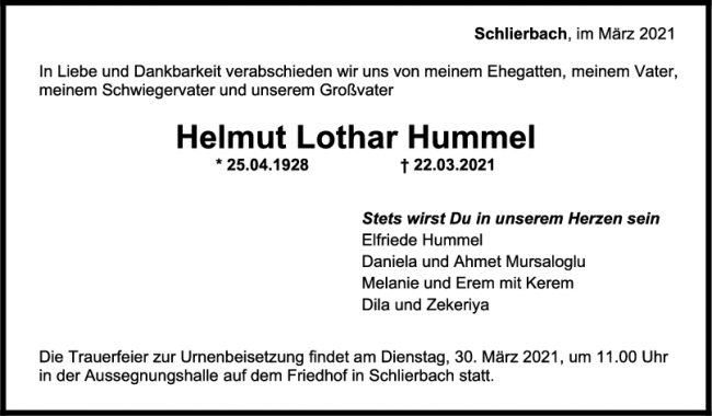 TodesanzeigeVon Benny Kuder21. März 2021Kommentar hinterlassen