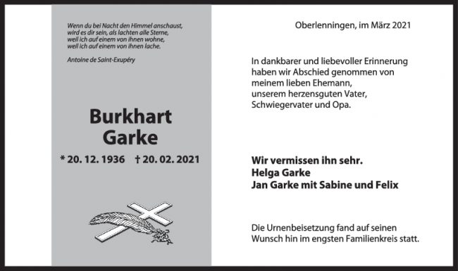 Trauer Burkhart Garke