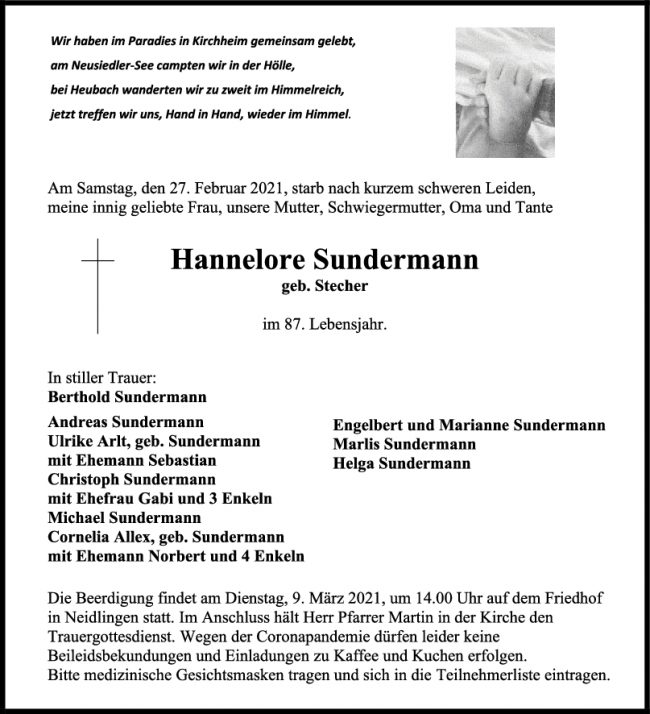 Trauer Hannelore Sundermann