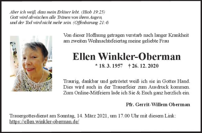 Trauer Ellen Winkler-Obermann