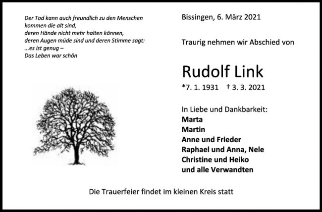 Trauer Rudolf Link
