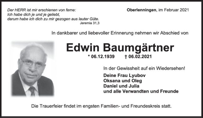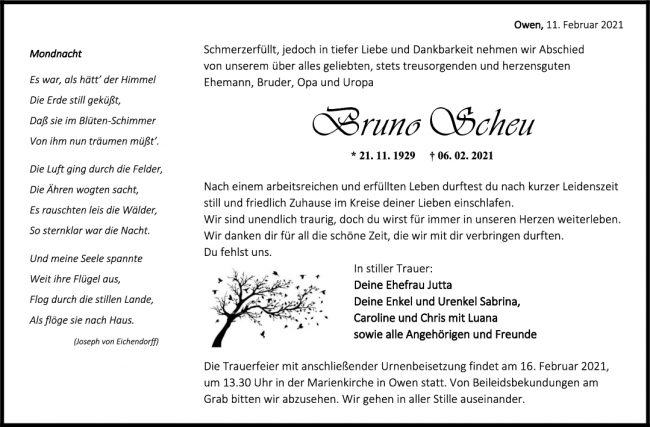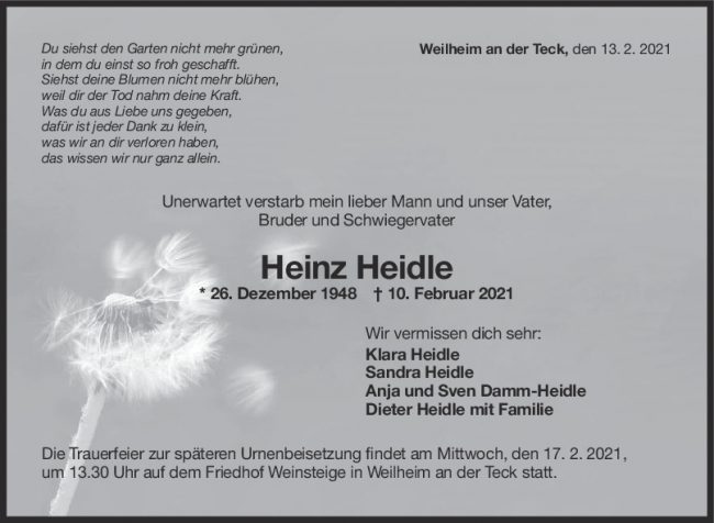 TodesanzeigeVon Benny Kuder13. Februar 2021Kommentar hinterlassen