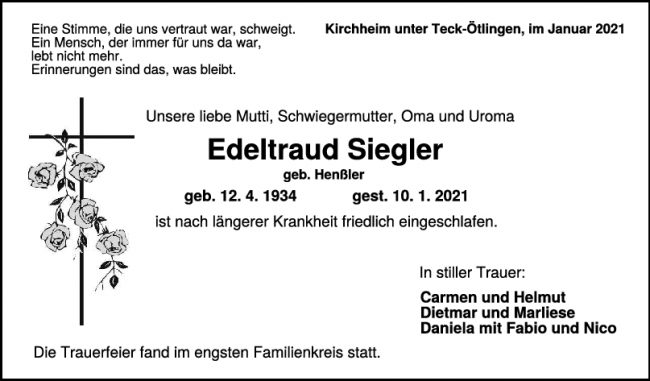 TodesanzeigeVon Benny Kuder30. Januar 2021Kommentar hinterlassen