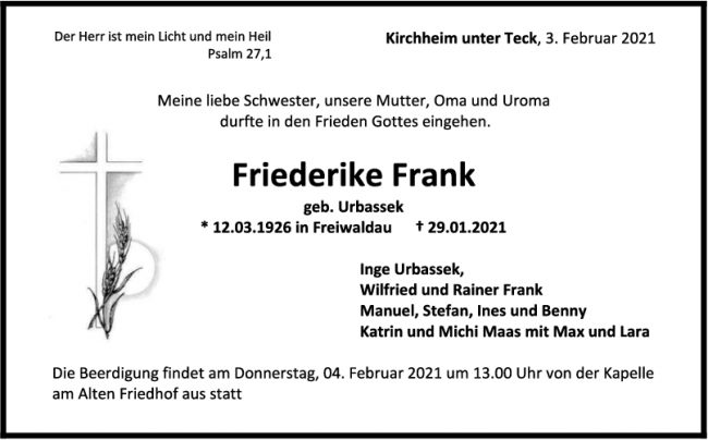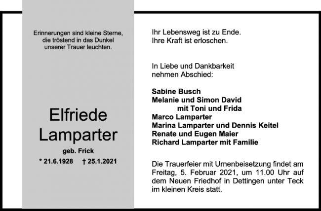 TodesanzeigeVon Benny Kuder3. Februar 2021Kommentar hinterlassen