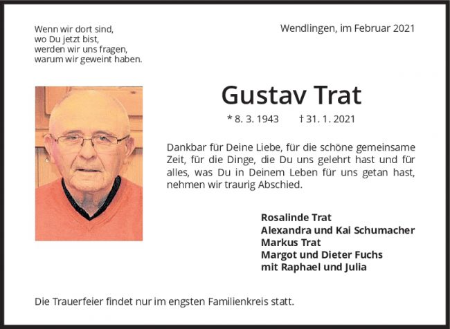 TodesanzeigeVon 6. Februar 2021Kommentar hinterlassen