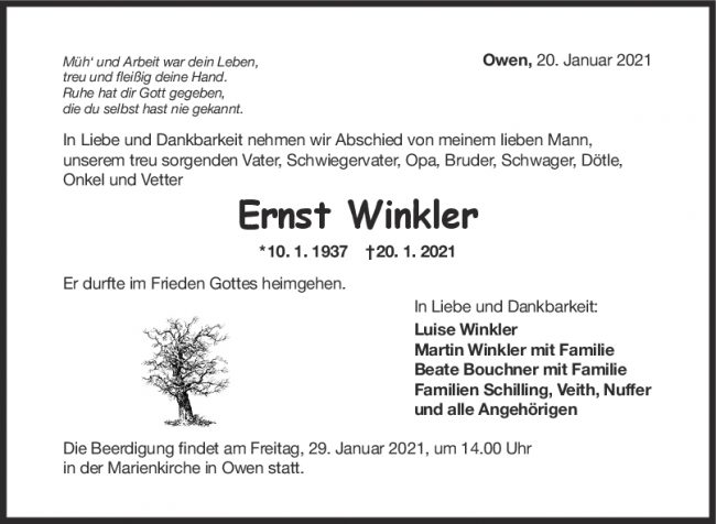 TodesanzeigeVon Benny Kuder28. Januar 2021Kommentar hinterlassen