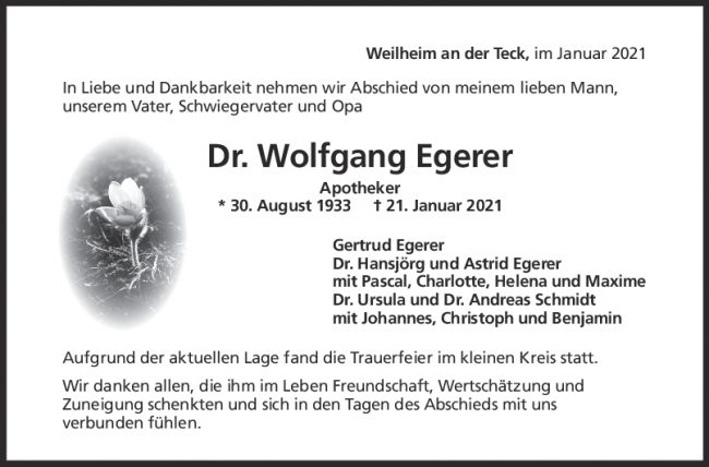 TodesanzeigeVon 30. Januar 20211 Kommentar