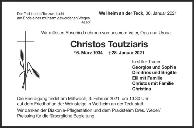 TodesanzeigeVon Benny Kuder27. Januar 2021Kommentar hinterlassen