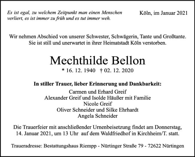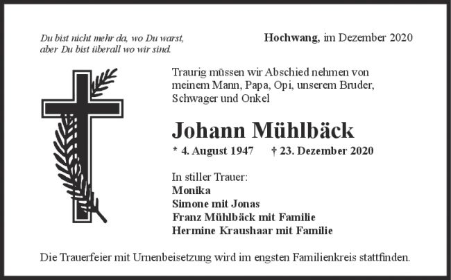 TodesanzeigeVon Benny Kuder10. Januar 2021Kommentar hinterlassen