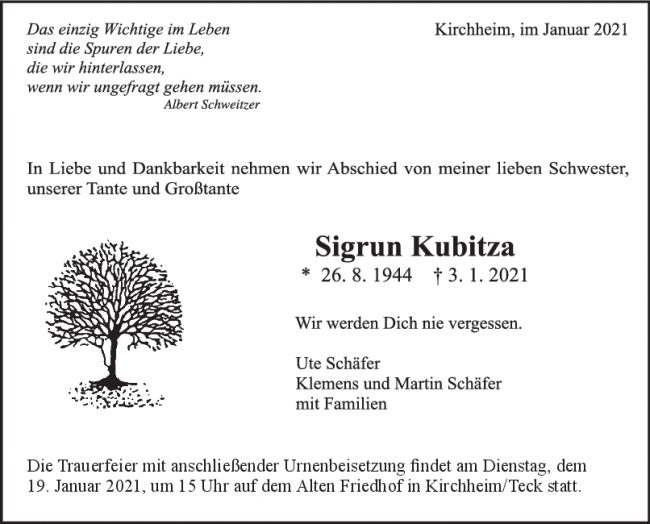 TodesanzeigeVon Benny Kuder12. Januar 2021Kommentar hinterlassen